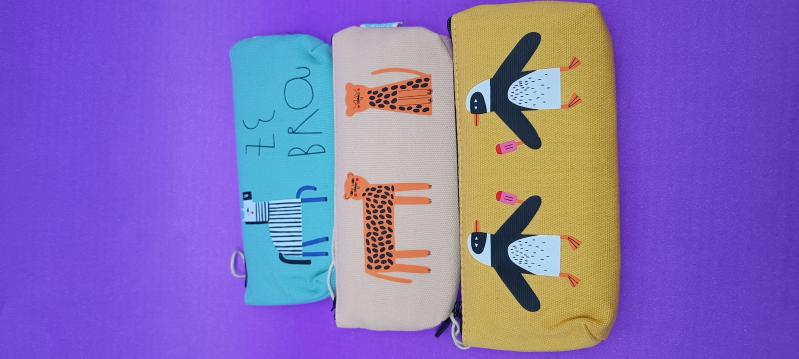 'descricao' => 'Estojo estampado Algodão Collor - Temáticos - Azul- Zebra ,Rosa- Onça e Amarelo - Pinguim- 18,5 x 10cm - Fechamento com ziper - Tecido alta resistência',